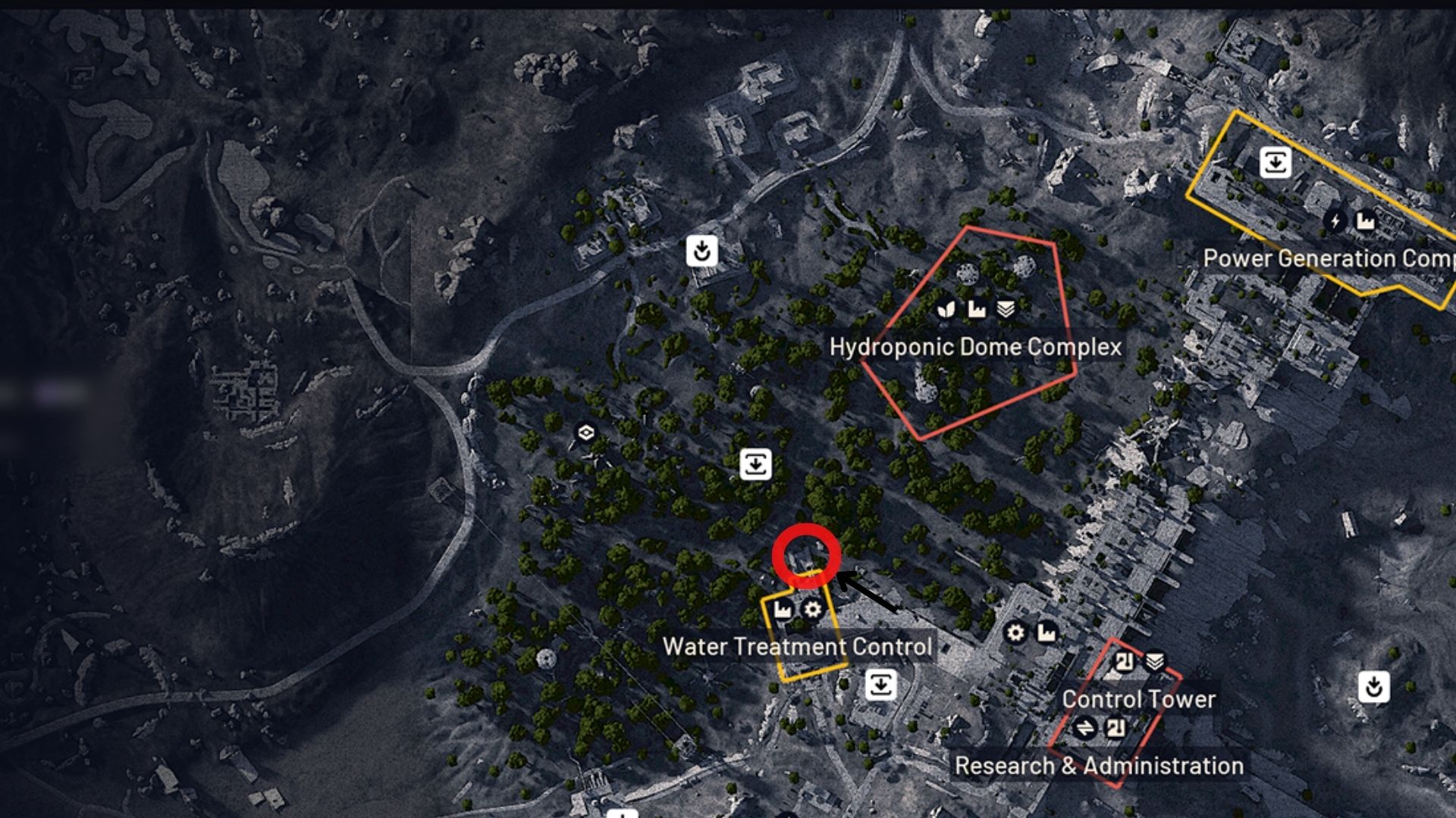 Your first task is to make your way to the Water Treatment Control area in the center of the map, just south of the Central Swamp Lift. Depending on your spawn location, you may have to make your way through heavily patrolled areas. Ideally, avoid engaging in firefights as much as possible to reach the water treatment plant quickly.