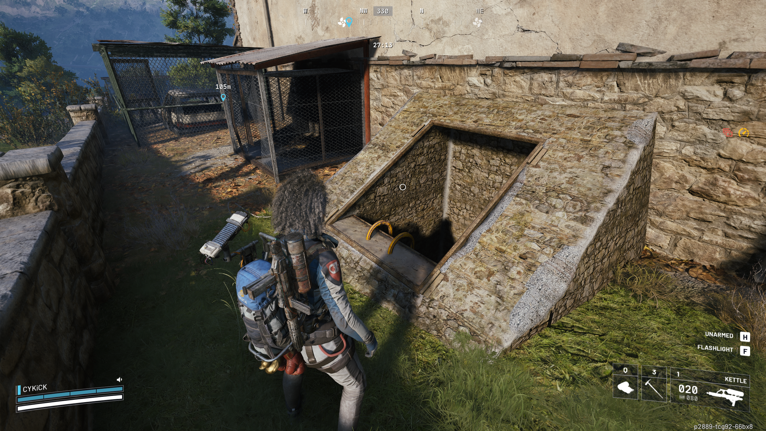 - Right in front of the house is an entrance to its bunker. Enter it, and find the two containers you can breach and open.
