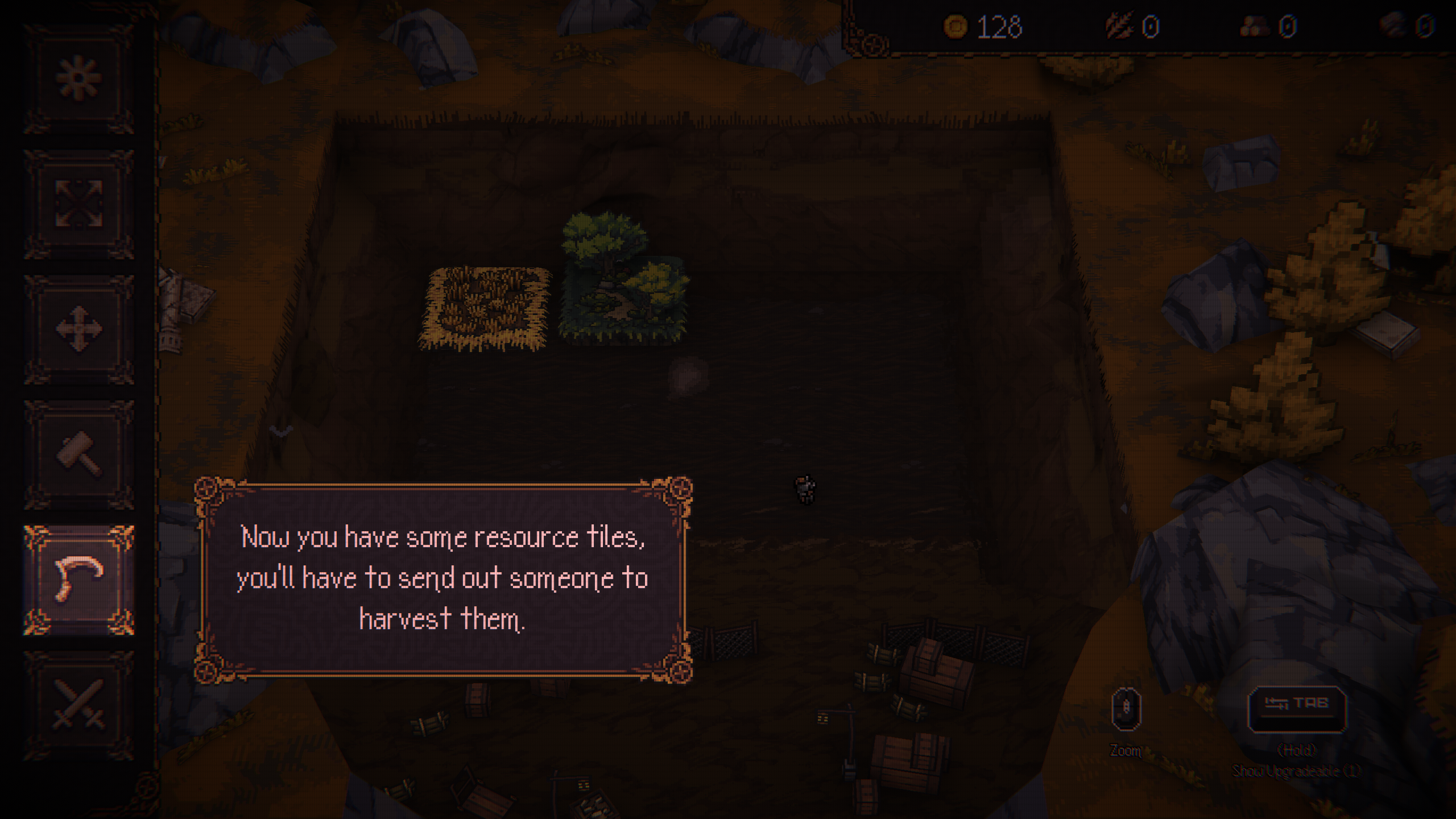 This is right below the Build Menu. Once you have your resources ready, you can choose the Harvest Menu to collect them. Depending upon the resource, the time required for harvesting will vary. With your character in place, you can click your left mouse button to send the worker to gather the resource. After finishing the job, there will be a cool-down period before you can harvest again. This involves going to the ditch to play another round and returning.