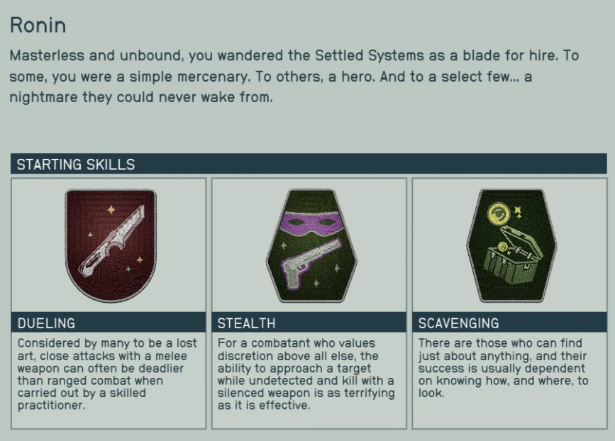 Ronin – Masterless and unbound, you wandered the Settled Systems as a blade for hire. To some, you were a simple mercenary. To others, a hero. And to a select few… a nightmare they could never wake from.