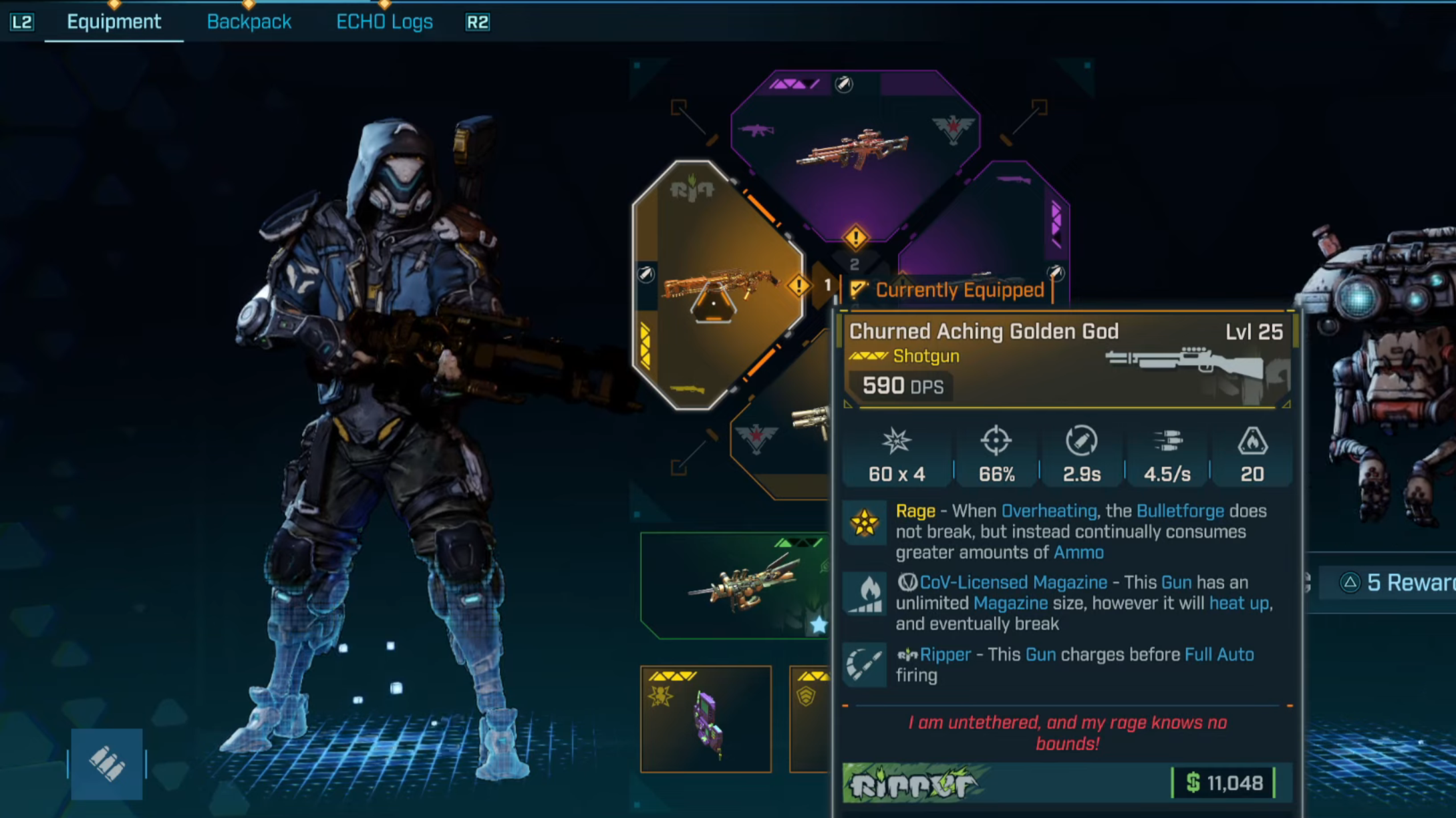 Legendary Effect | Rage (When the gun overheats, the bullet forge will cease to break. Instead, it will continuously consume a larger amount of ammo) |