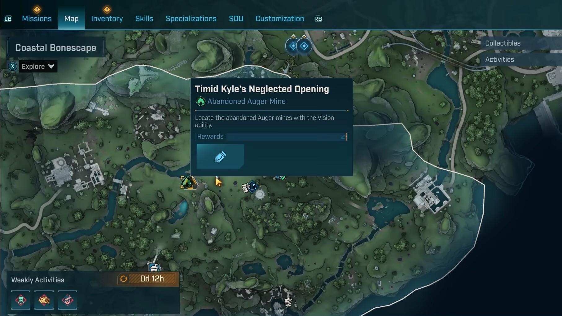Voraxis is located at the end of the Timid Kyle’s Neglected Opening, an Abandoned Auger Mine on the south bank of the lake in Coastal Bonescape, Fadefields. To unlock Auger Mines as points of interest, you’ll have to complete the 11th main story mission, ‘Shadow of the Mountain.’ Fast travel to the Stockroom Order Silo if you have unlocked it and head directly west to reach Timid Kyle’s Neglected Opening. The mine’s entrance lies beyond a small lake.