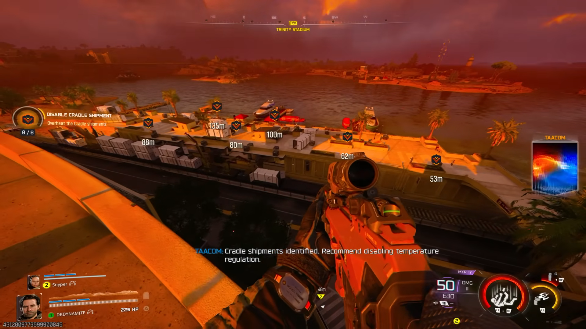 Once you reach the deck, you will be able to mark all six cradle shipments. Each objective has several guards near it, and you have to eliminate them to proceed safely. Overheat the shipments by pressing the prompted button.