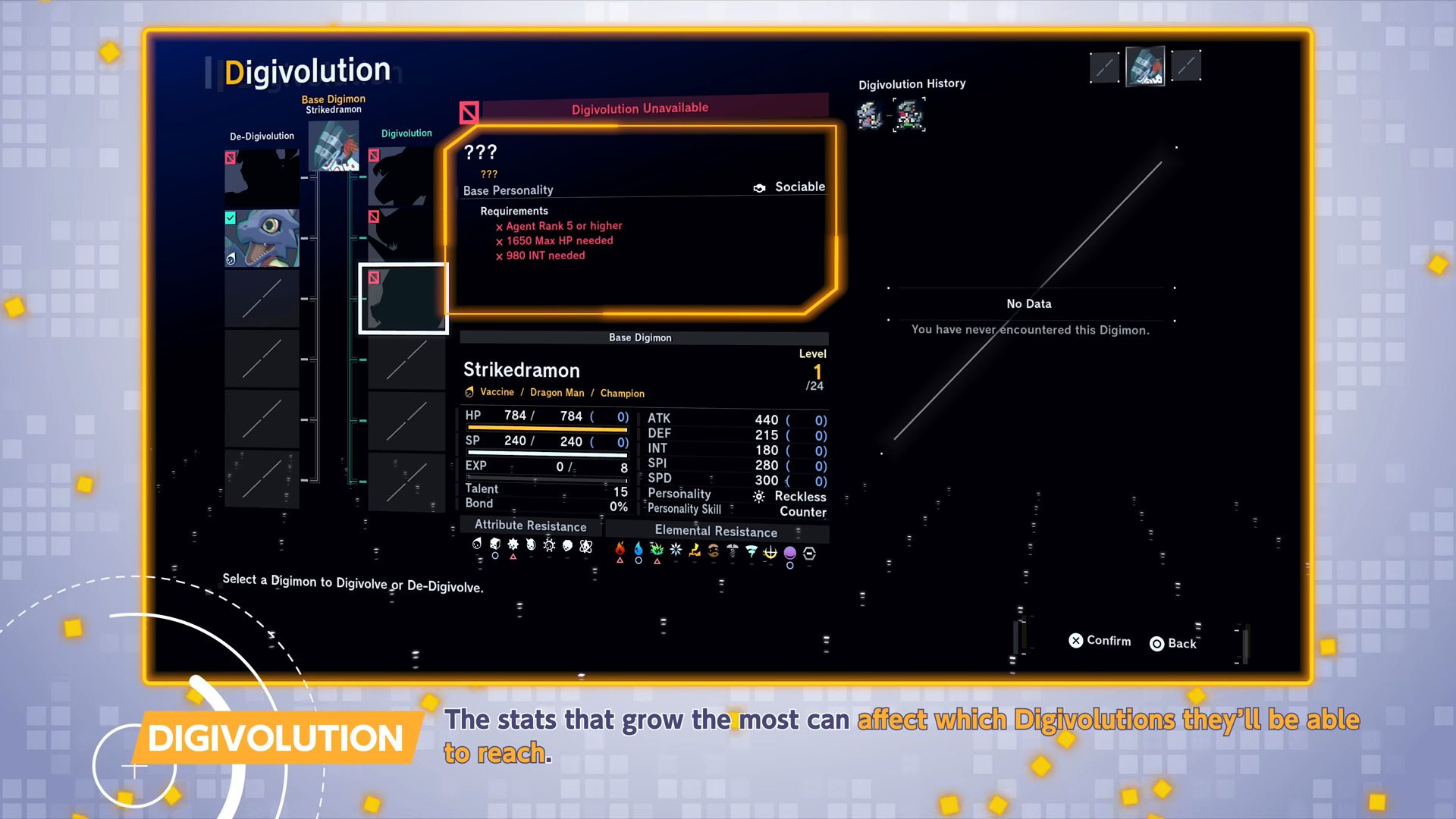 However, stats are also important outside of combat. Your Digivolution requirements involve stats as well, so improper management could result in a number of Digivolutions being locked away. There are many ways to increase stats, but the main methods are leveling up, using the Digifarm, and using Agent Skills.