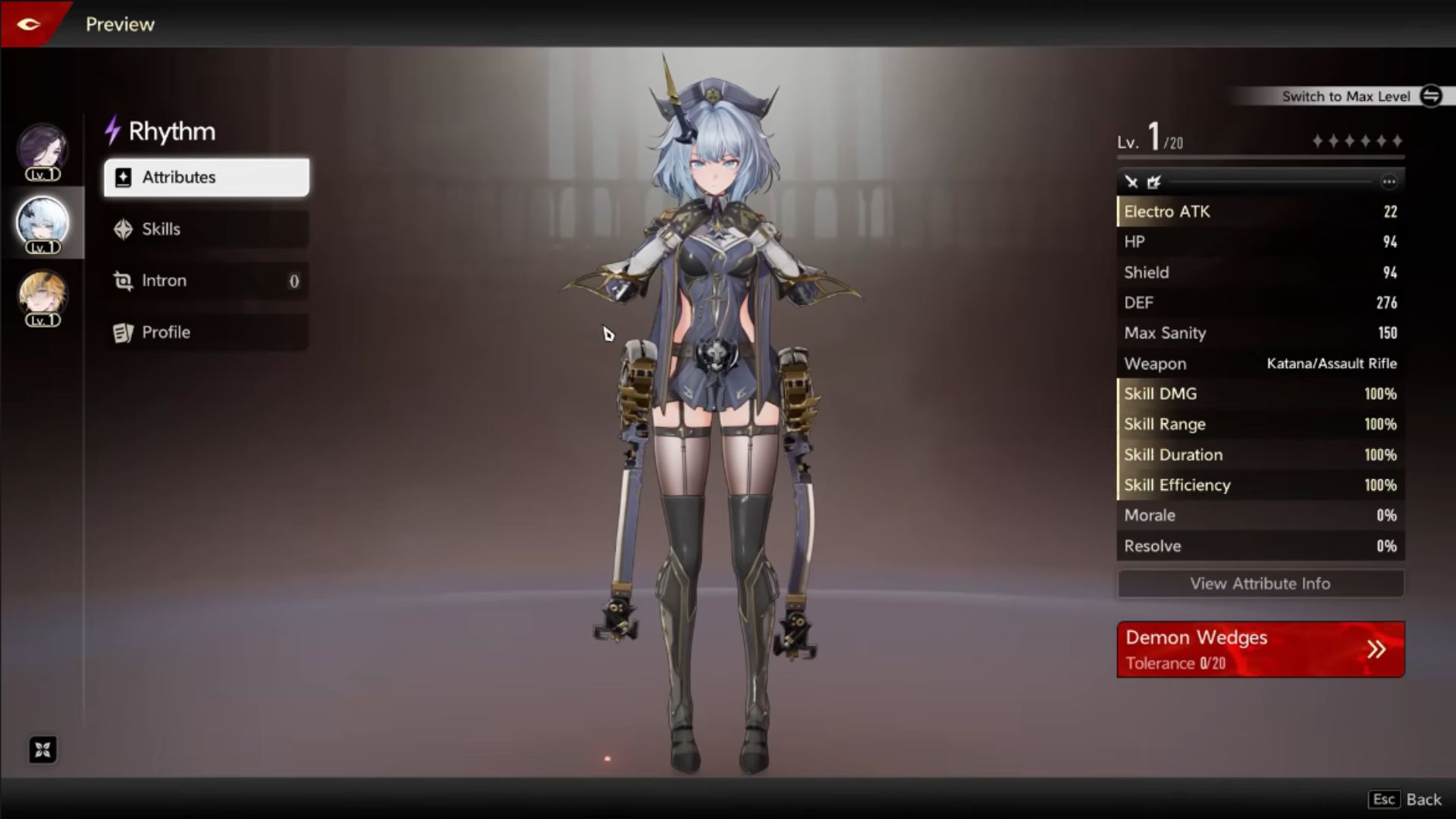 | I4 | At the start of battle, Rhythm gains Electric Energy equal to 50.0% of her Max Sanity. |