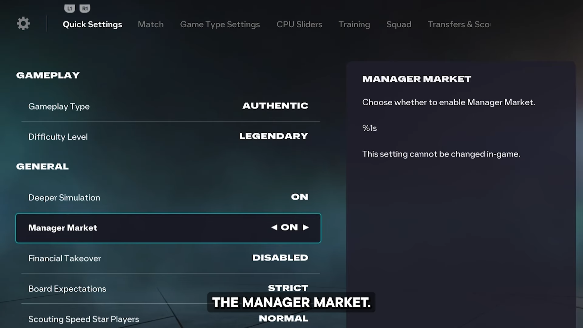 This is one of the most crucial aspects that will significantly impact your Career Mode experience. Here, you can fine-tune your experience to be as realistic as you like. From Difficulty Level to toggling Financial Takeover, there are myriad options.