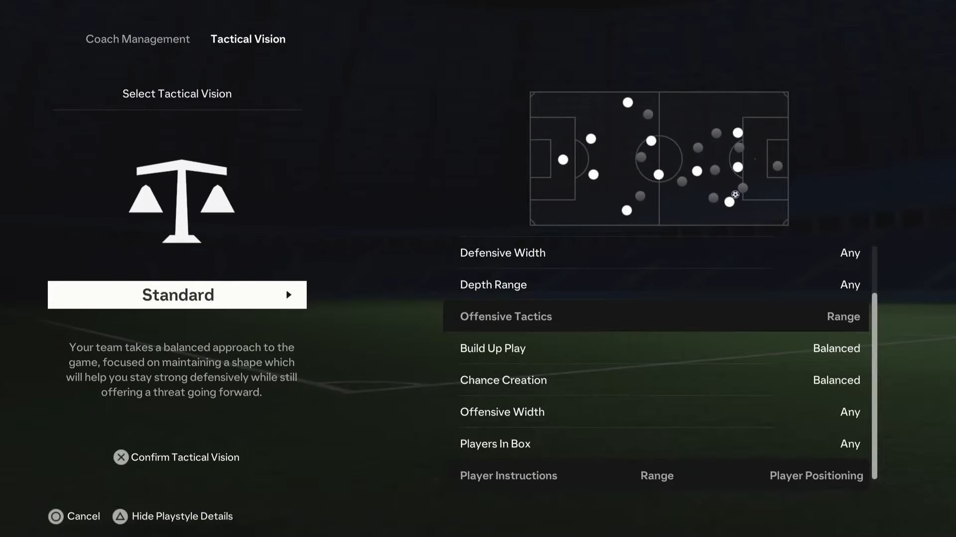 This might sound like a no-brainer, but the Tactical Vision of your team is one aspect you should not leave as is. Try and hire the highest-starred coaches you can afford to all Attack, Midfield, Defense, and Goalkeeper departments. The following are three of the safest tactical visions initially: