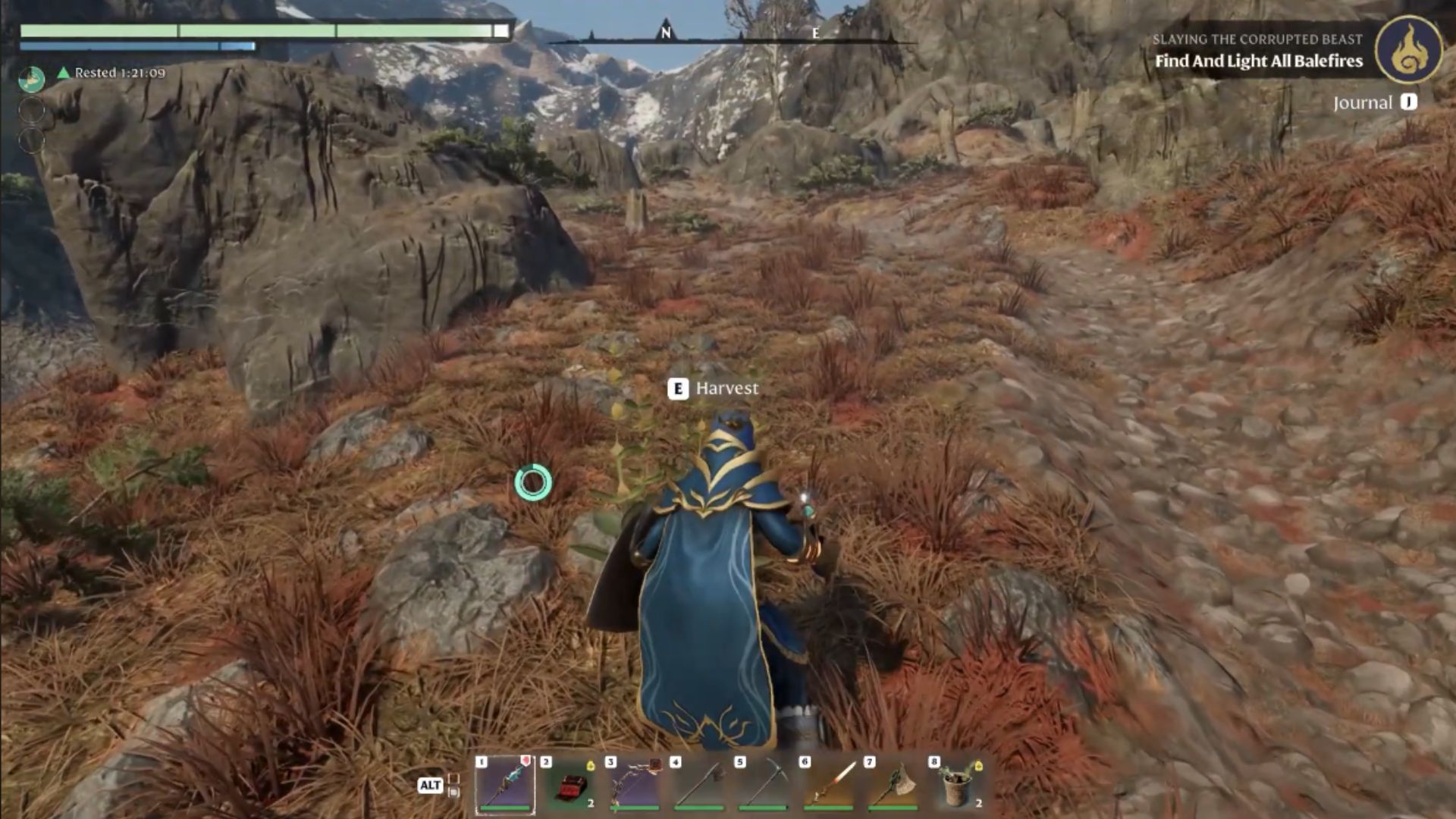 Fast travel to the Ancient Spire in Albaneve Summits and look to your east. You’ll see a mountain range by the river. The mountain has a single road cutting through it. Hike up this road till you begin to see large rocks. You’ll find Gentian growing right by these rocks. Walk up to the plant, and press the E key to harvest the resource.