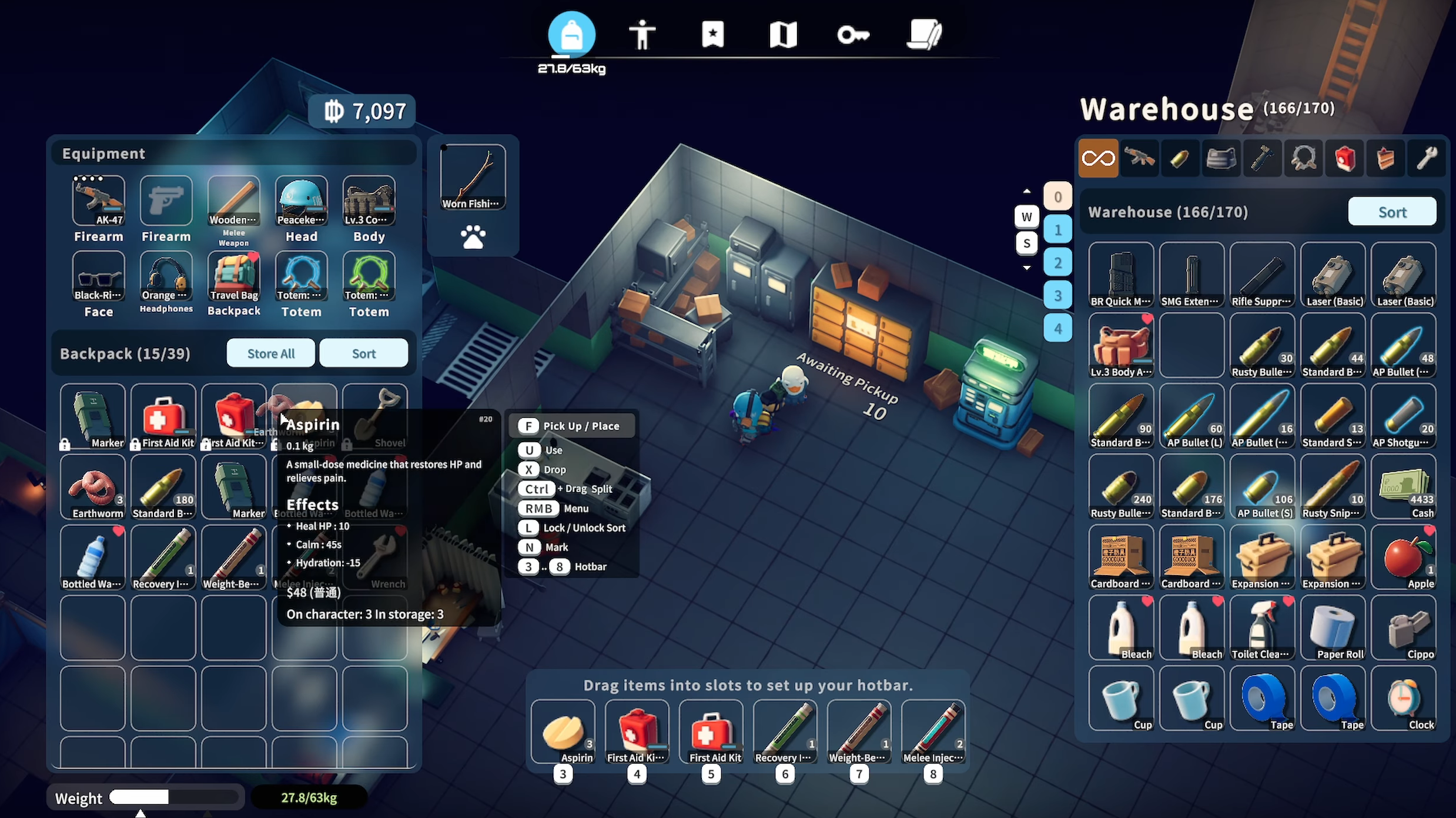 Aspirin | A small-dose medicine that restores HP and relieves pain. | 32 | 16 |