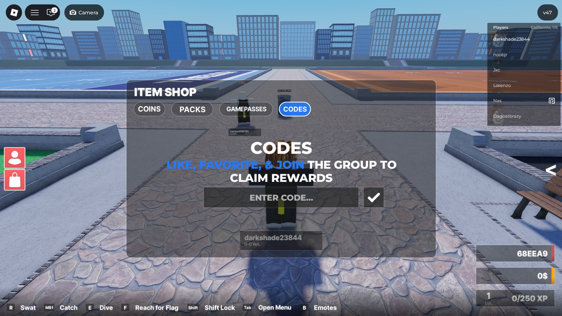 - Now, switch to the Codes tab in this shop menu.