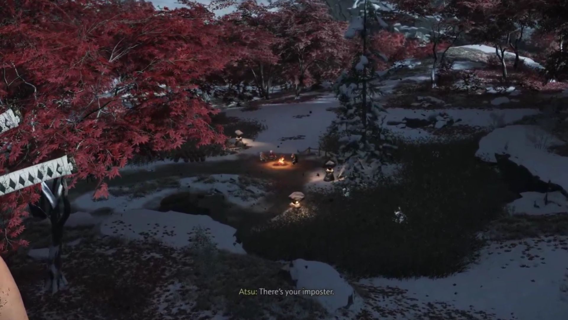 Reach the Crimson Forest and resume your search on foot. You’ll then reach the Traveller’s Rest, where you’ll be able to spot the imposter by a campfire below. The imposter is surrounded by hidden Nine Tails, and uses his unassuming nature to draw people to him, leaving them exposed to ambushes.