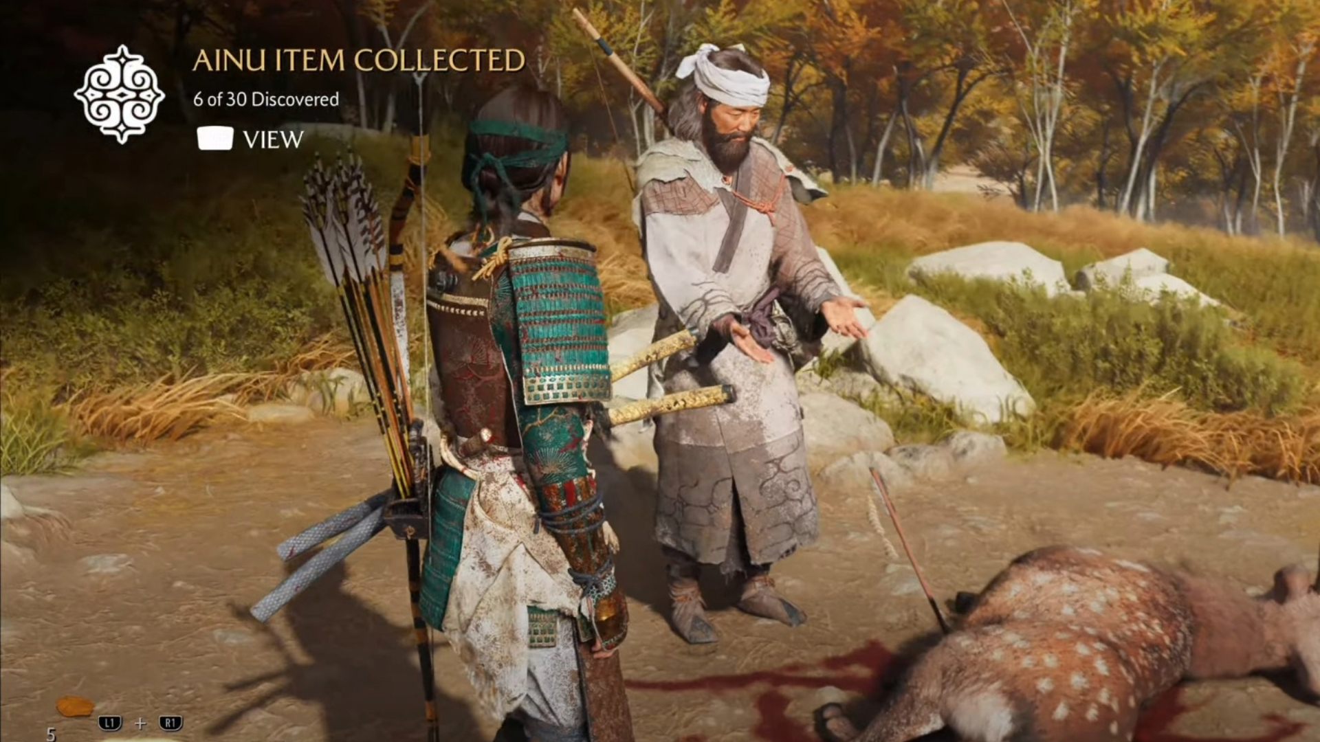 Yotei Grassland Ainu item pickup (Source: Sony Interactive Entertainment and Backseat Guides/YouTube)