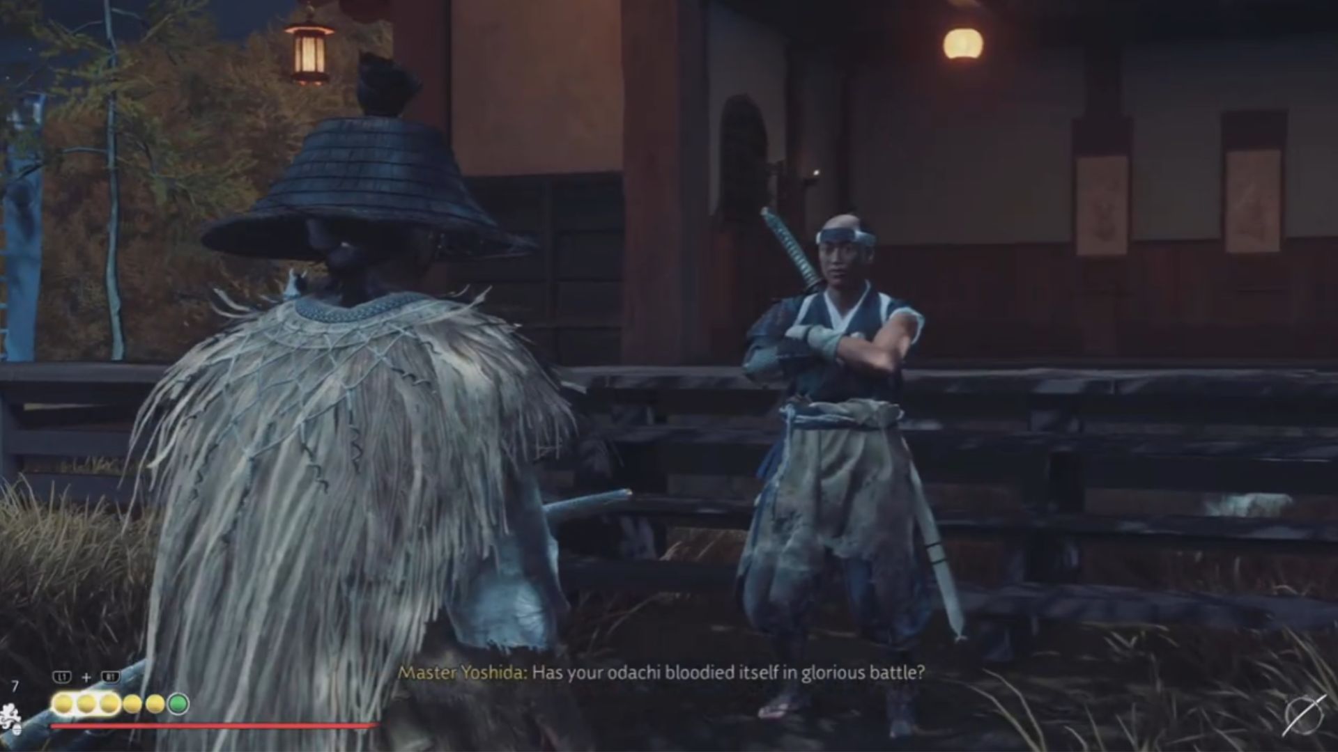 Master Yoshida will then ask you to calm your spirit by meditating. He’ll then sit down and ask you to do the same, for however long you can. Sit down, and stay seated for as long as you like. When you’re bored, press circle to exit meditation. Master Yoshida will then comment on the restlessness of your spirit but will commend the effort by gifting you the Odachi of Master Oshida. This will bring his lesson and the quest to a close.