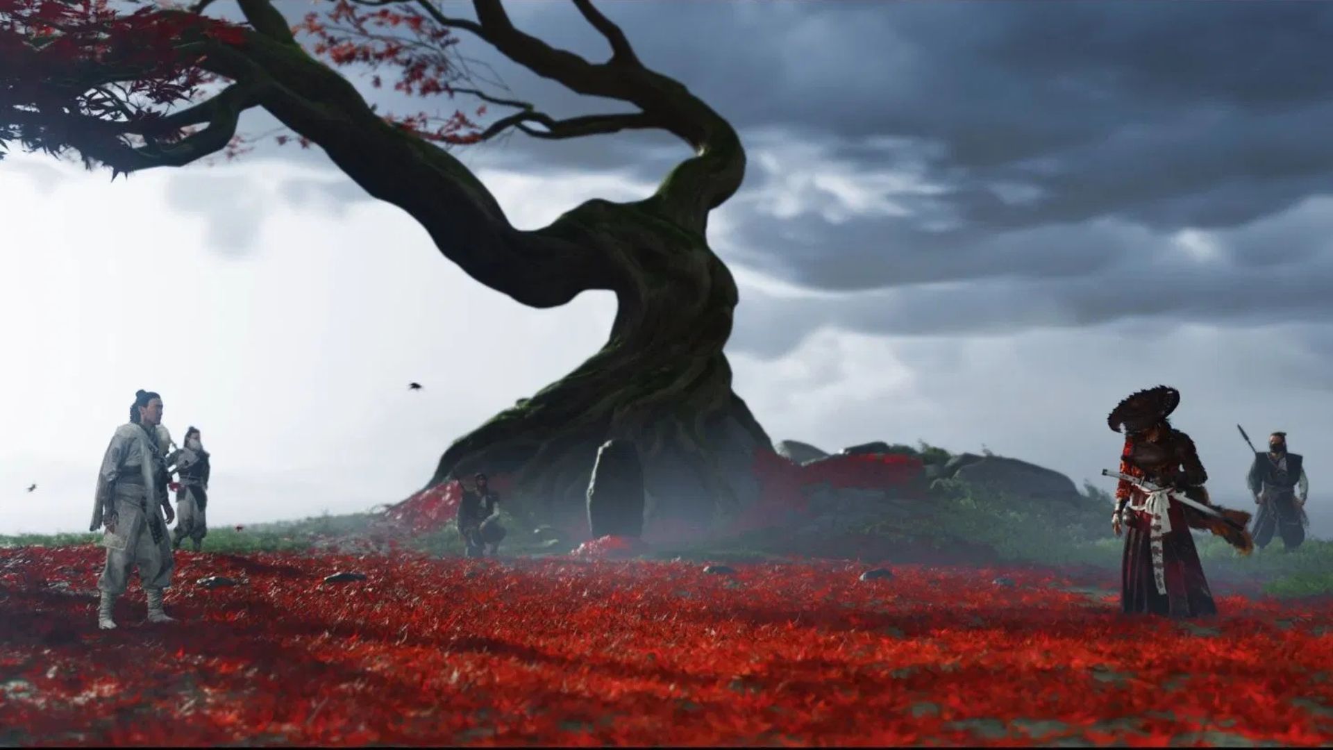 Talking to Ugetsu, the storyteller, he reveals some information about the Storm Blade tucked away in the hills behind him. He further explains how he does not know the weapon’s history. However, he might be able to find out once you retrieve it for him. This kickstarts the Storm Blade quest, where you will get to know more about Jin Sakai, the protagonist of the previous title, Ghost of Tsushima.