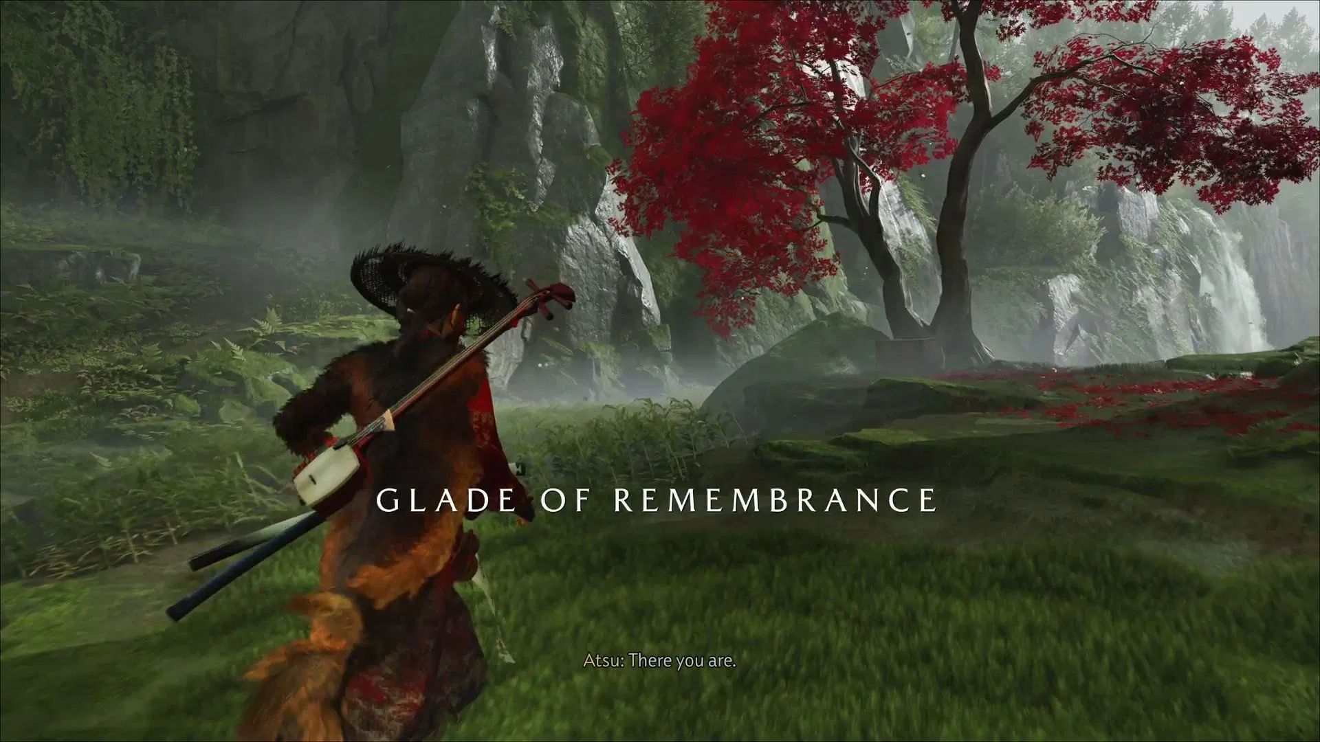Once you are past the opening, you will have to engage in a bit of platforming. Eventually, you will reach the Galde of Remembrance. You will have another interaction with the gray fox in this area. It will lead you to a wooden chest below a tree.