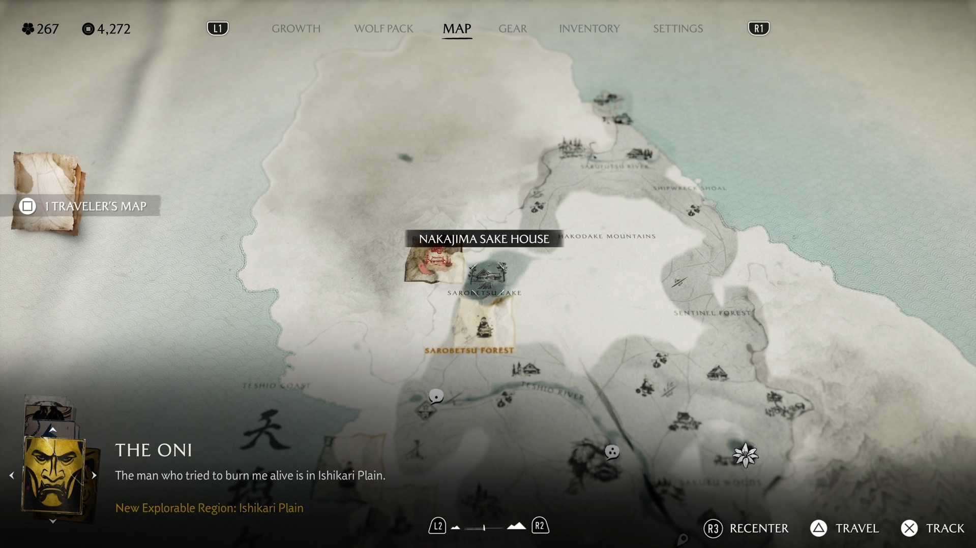 To start the quest, you’ll first have to visit the Nakajima Sake House in the Teshio Ridge zone of the map. You can use the image above for guidance on how to get there. Once there, proceed inside the Sake House and you’ll run into two men having an argument. One of the men, a ronin, uses a smoke bomb to blind the other temporarily and make him run out of the building. You can now go up and talk to him. He’ll offer you a job, which you can accept or reject. Accepting the job will begin The Blind Stranger side quest.