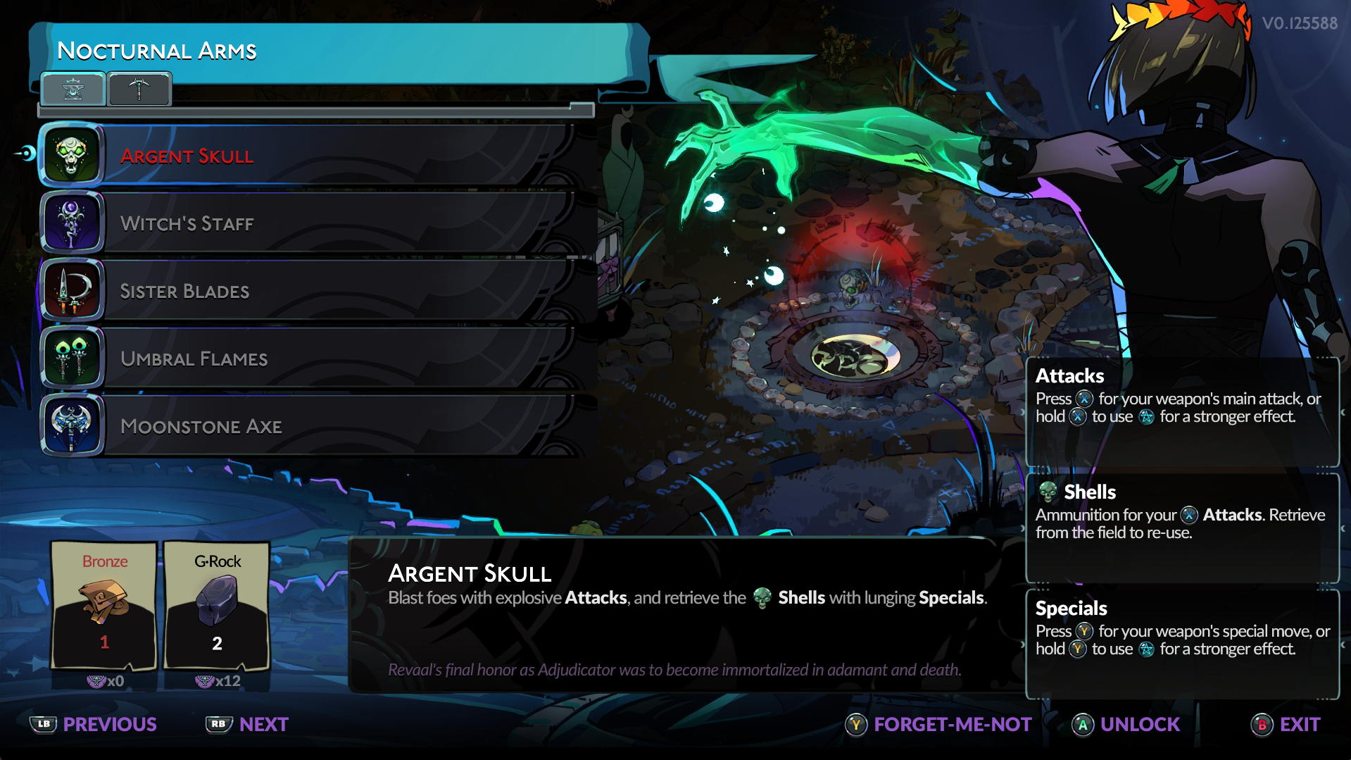 To unlock and craft new Nocturnal Arms in Hades 2, visit the Silver Pools. You can find this area after the Altar of Ashes and Schemeleus’s Training Grounds. Also, the Silver Pools are recognizable by the glowing blue circle in the ground surrounded by a crescent moon and pentagram markings. In short, stand inside the blue pool and interact with it to open the crafting menu.