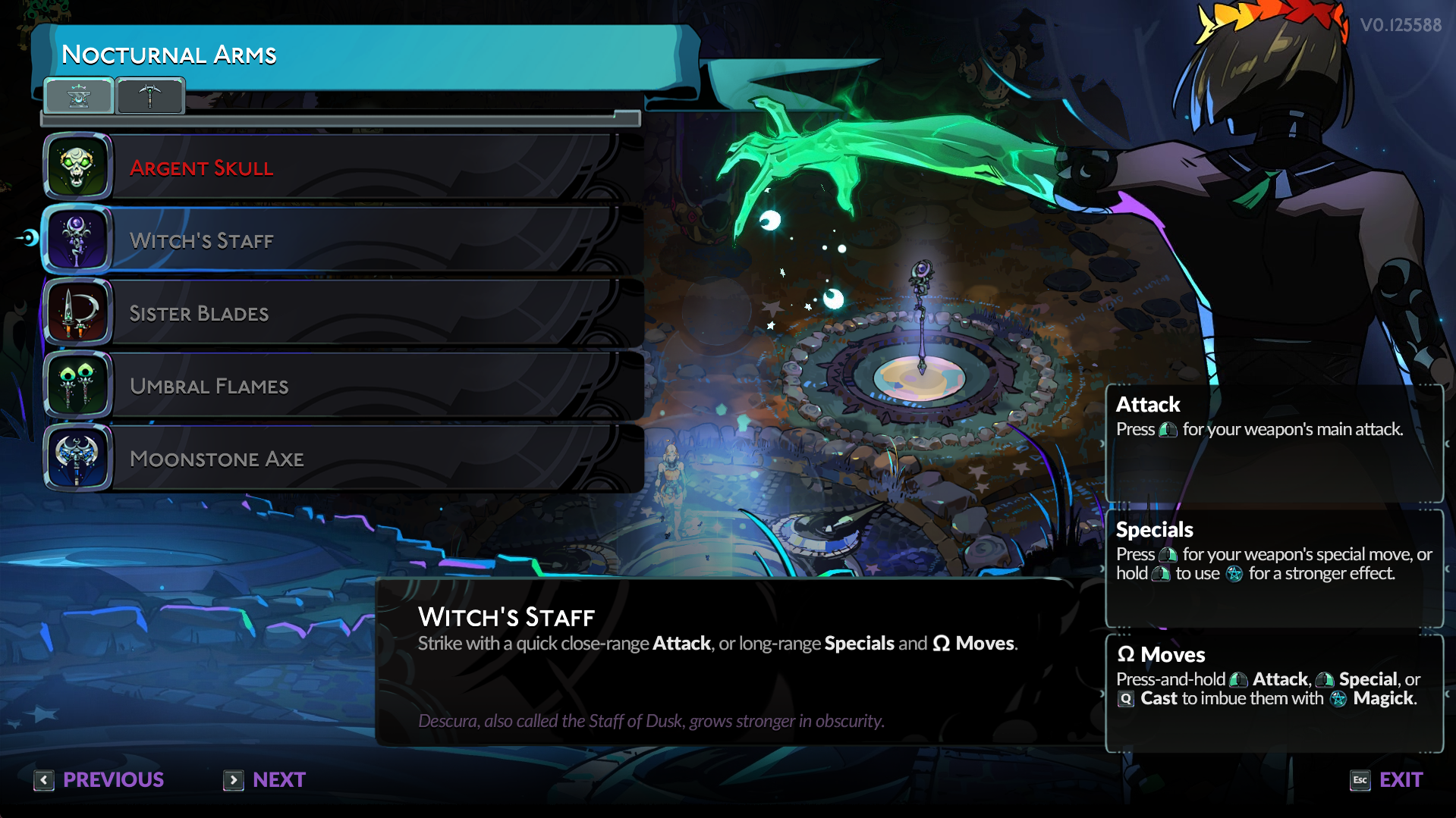 - Witch’s Staff – Descura (Default weapon for Melinoe)