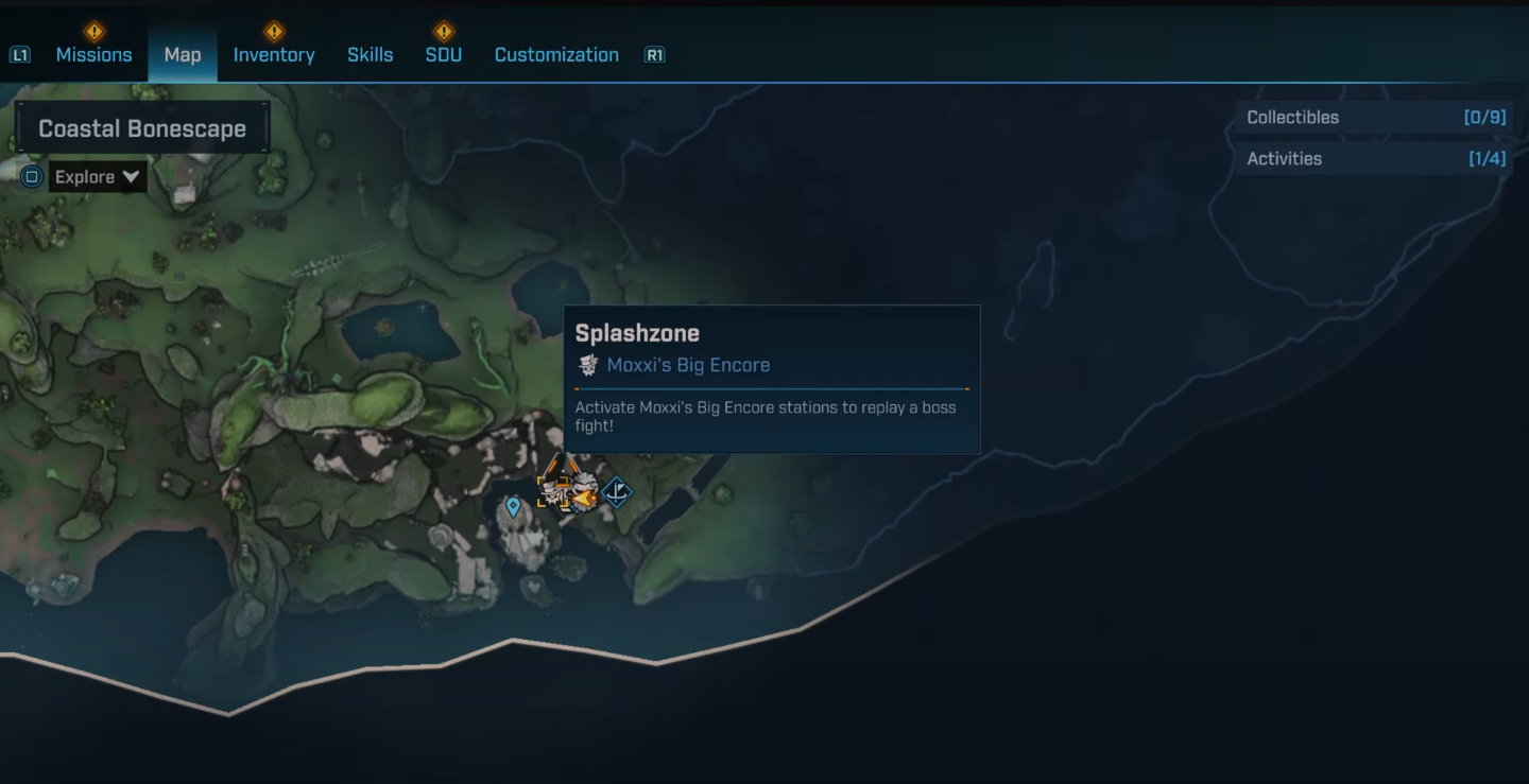 Next, use the Fast Travel station in Coastal Bonescape to arrive at the Riptide Grotto point of interest. Once you reach the location, head inside and begin clearing the enemies there. After that, continue toward the end of the area to find Splashzone.