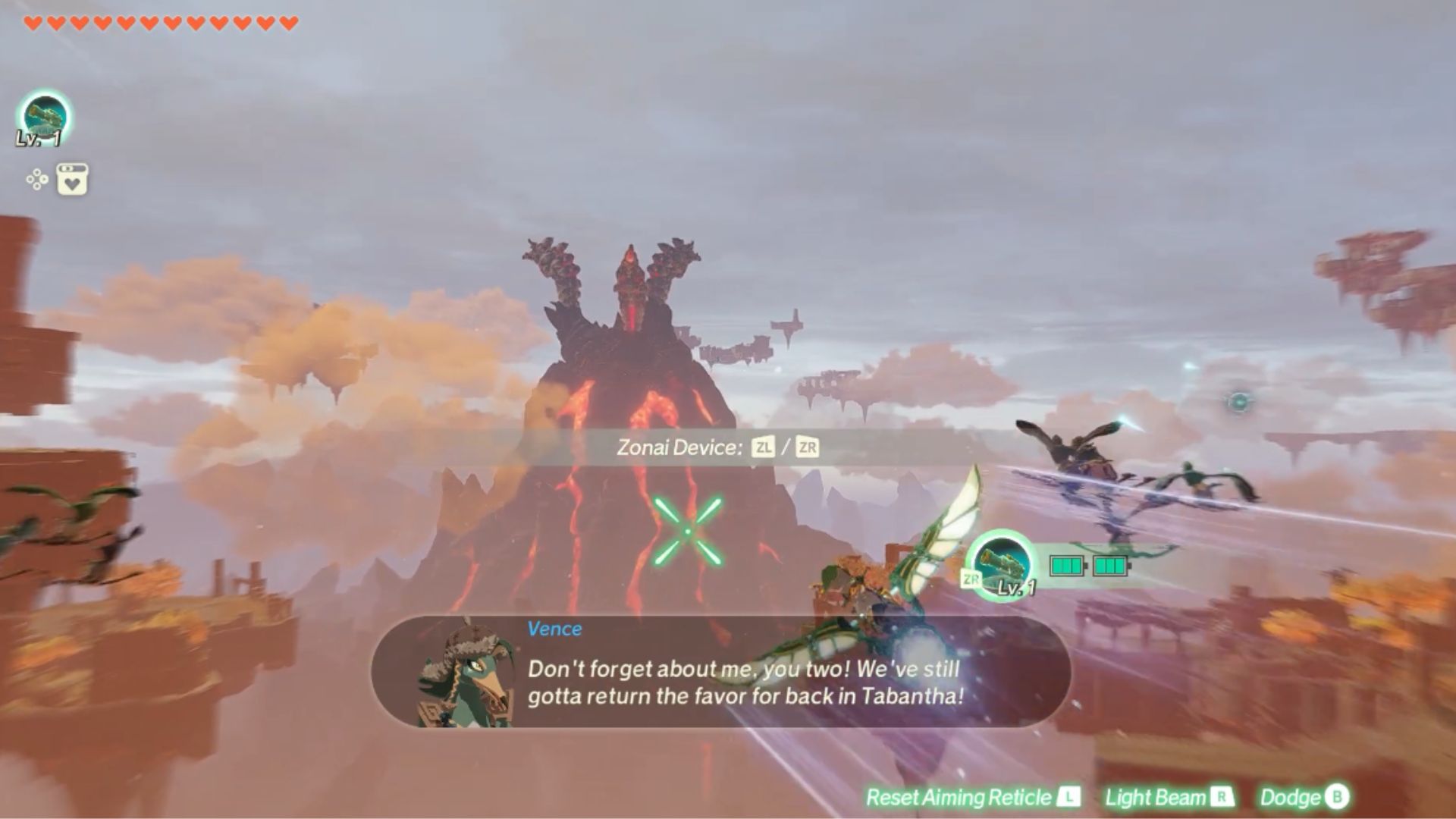 As you reach close to Death Mountain, you’ll descend and fly closer to the lava. Watch out for the rocks and lava, and try and stick to the mid-to-left side of the screen to be safe from all obstacles. Along your path, you’ll see the yellow circles, which you need to fly through to obtain Korok seeds.