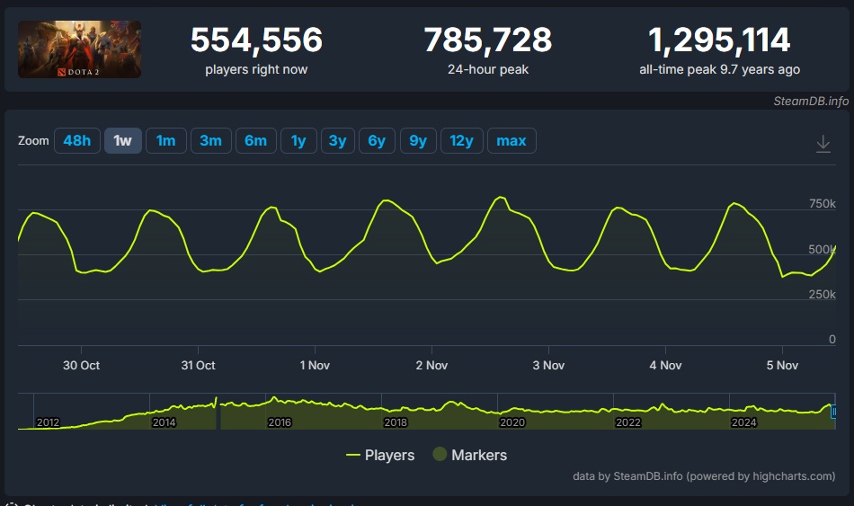Dota 2 still has a sizable player base. (Image via Valve | Steamdb)