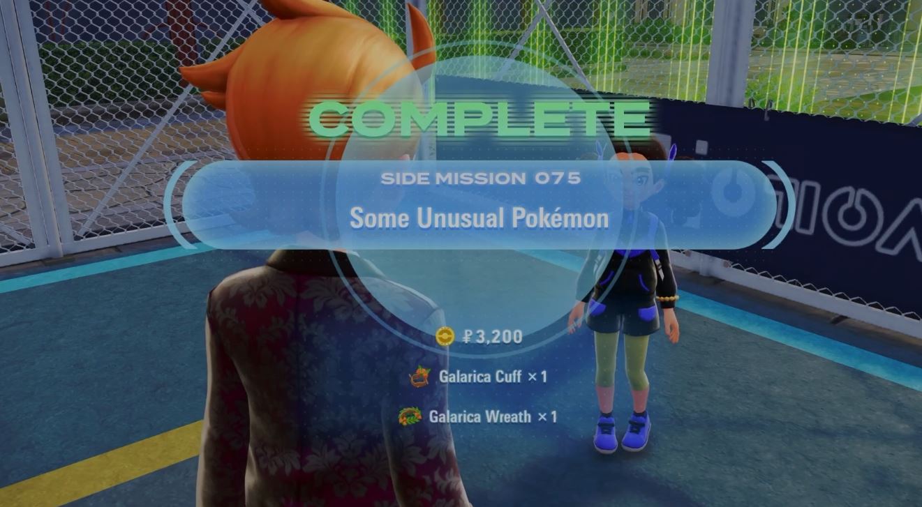 To unlock the Some Unusual Pokemon side quest, you have to complete Main Mission 26 first. Then the mission becomes available in the Vert Sector of Wild Zone 1. Subsequently, you can start this side quest by talking to a trainer named Touri in the region.