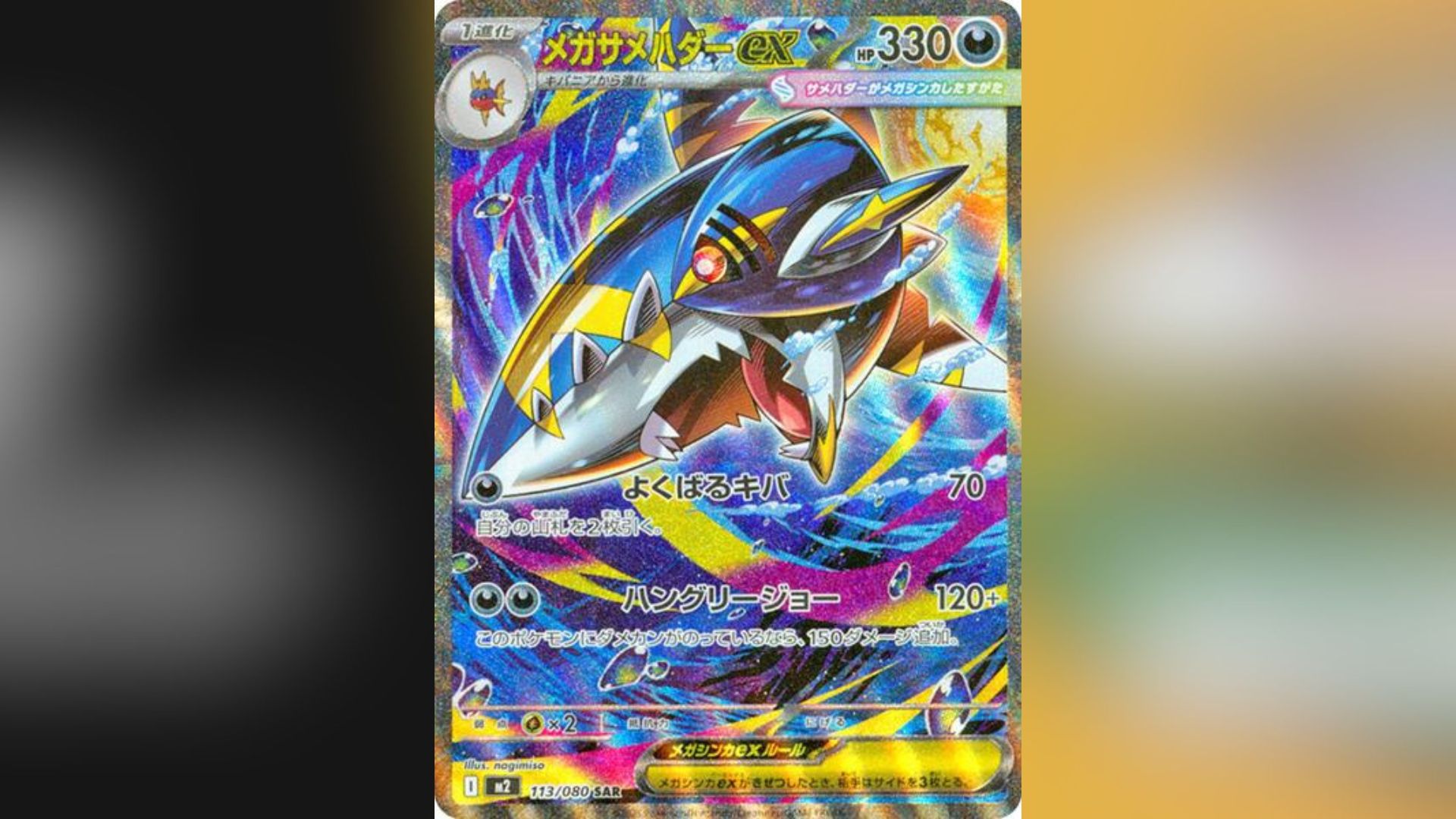 The trippiness doesn’t stop, as Mega Sharpedo ex also brings some gorgeous art. In the card we can see the Mega diving downwards, getting ready to deliver a crushing blow. Additionally, Mega Sharpedo ex is seeing decent use in Japan’s City Leagues, making it a very useful Mega as well.