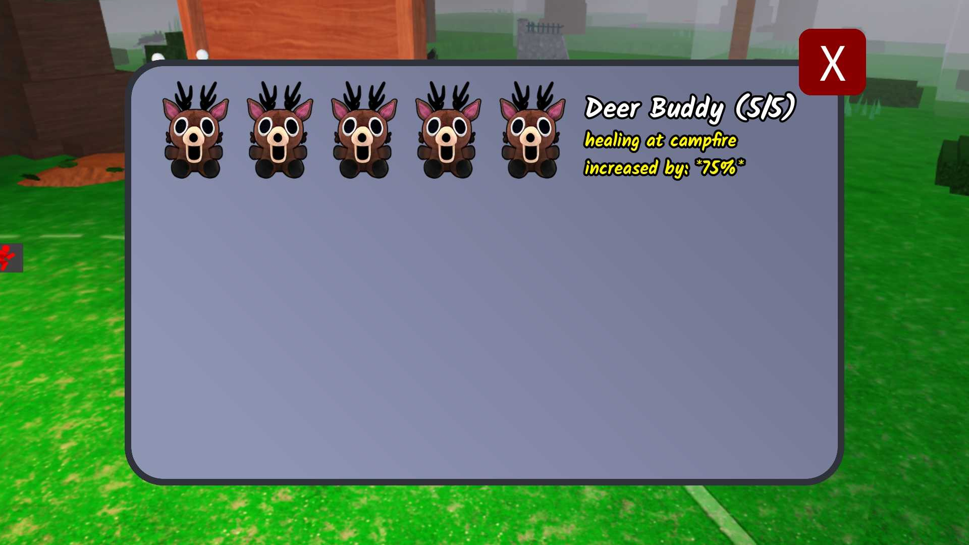 | Number of Deer Buddies on the Toy Shelf | Bonus Healing Boost near the Campfire |