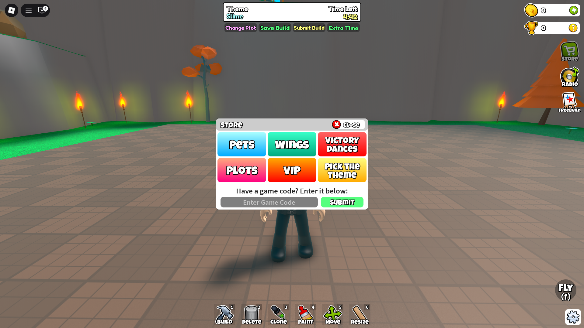 Want something to put your creativity to the test? In Build It, you can. You are given a topic, and you have to build something that stands out in under 8 minutes. Once the timer ends, everyone votes, and the best creation wins. Using codes will give you free credits that you can use to unlock new cosmetics and items like wings, plot colors, and more.