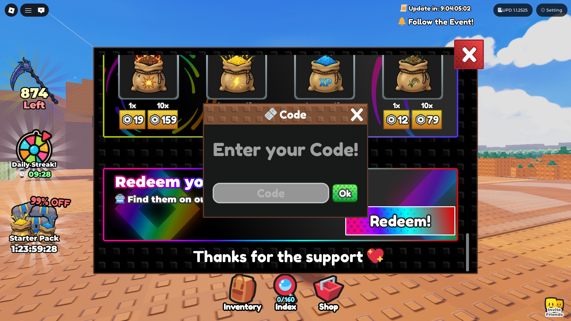 At the time of writing, there are only two active codes in the game. When the devs release new codes, we will make sure to add it below.