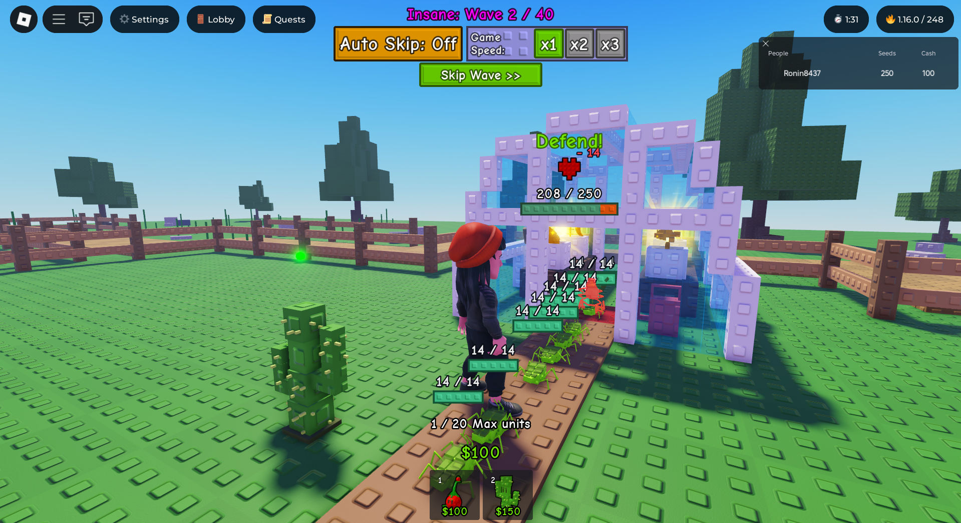 It’s good to start with simple plants like potatoes and strawberries because they don’t cost many seeds and help a lot in early waves. You should upgrade your plants to make them stronger as you play.