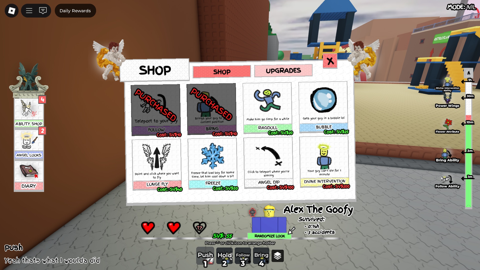 Every time you save Alex from a potential death, you’ll earn some cash. You can then spend the cash to unlock new abilities from the Ability Shop. You can also invest some of your cash to get useful upgrades to your existing abilities. Keep in mind that every ability you purchase will be added to the hotbar permanently. Also, all abilities have a cooldown period, which means you’ll need to wait a while before you can trigger it a second time.