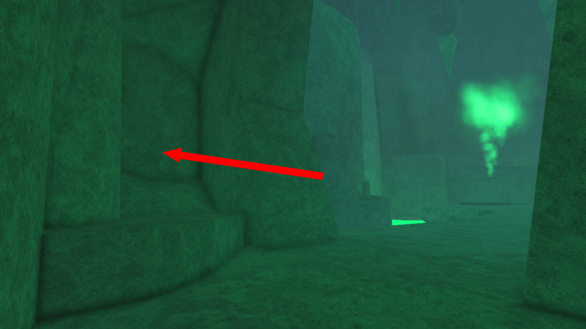 • Enter the cave, and you will find a greenish hue coming from the Brine Pool area.