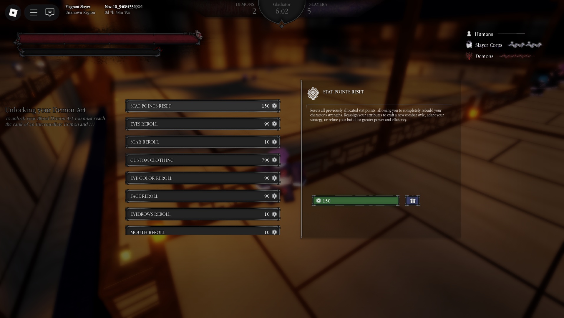 When you press M, the menu that opens also has an in-game shop option. Choose that to open up a wide range of items for sale. You’ll need to spend Robux to purchase the items at this store. Most of the items for sale are rerolls. One option also lets you reset your stat points.