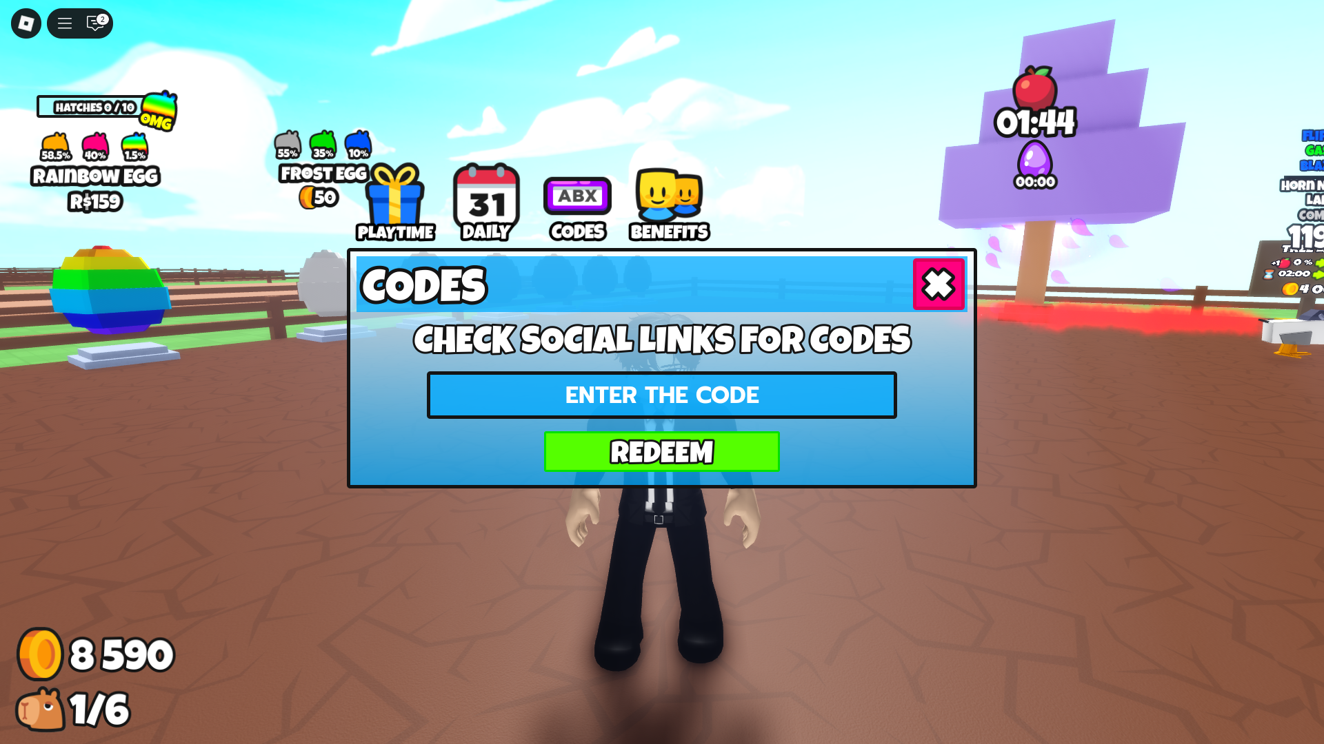 You can use Energy to speed up pet activities and boost production. Potions grant temporary multipliers for Coins and Luck, while Relics give passive stat bonuses that improve your chances of hatching rare pets. Redeem and use them early to grow your farm faster and get better pets for fusion.