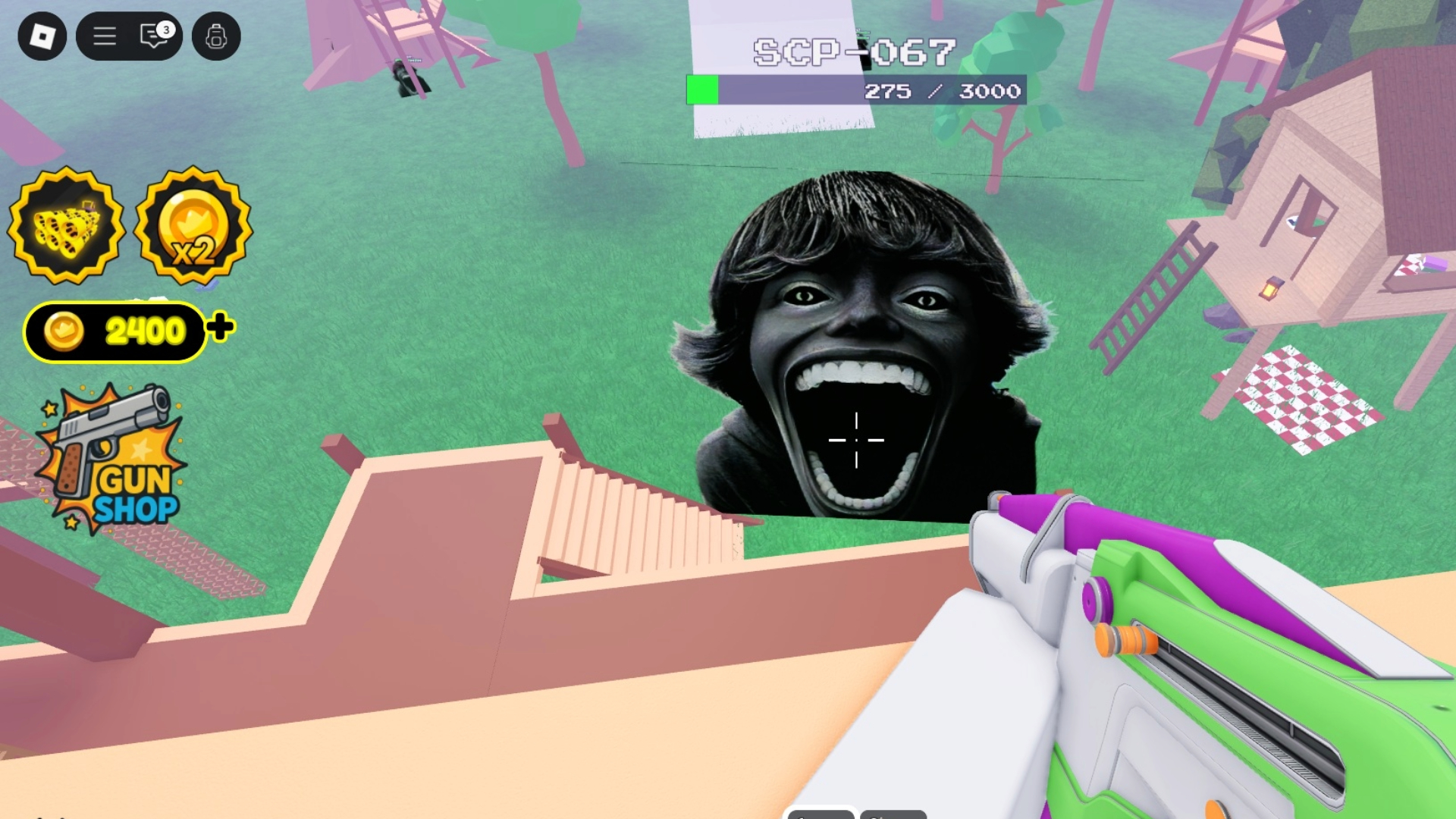 In Survive And Kill 67, you’ll spawn into a large arena with several other players. All of you will constantly have to take down the killers that appear with scary expression a fully open mouth. If they get too close to you, they can drain your health. If your health reaches zero, you’ll die and respawn at the starting point. However, you’ll hold on to the coins you earned earlier. Although you spawn with the most basic guns, you can unlock better weapons as you. Here, are the primary gameplay pointers.