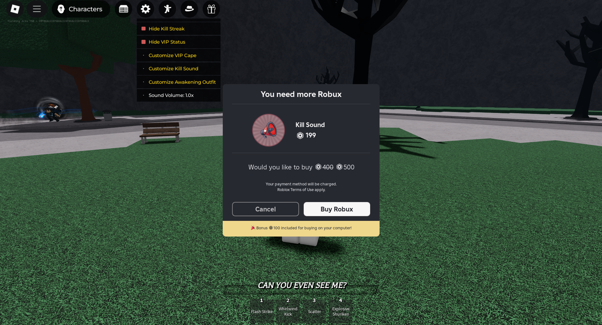 4. Purchase the Kill Sound game pass for 199 Robux.