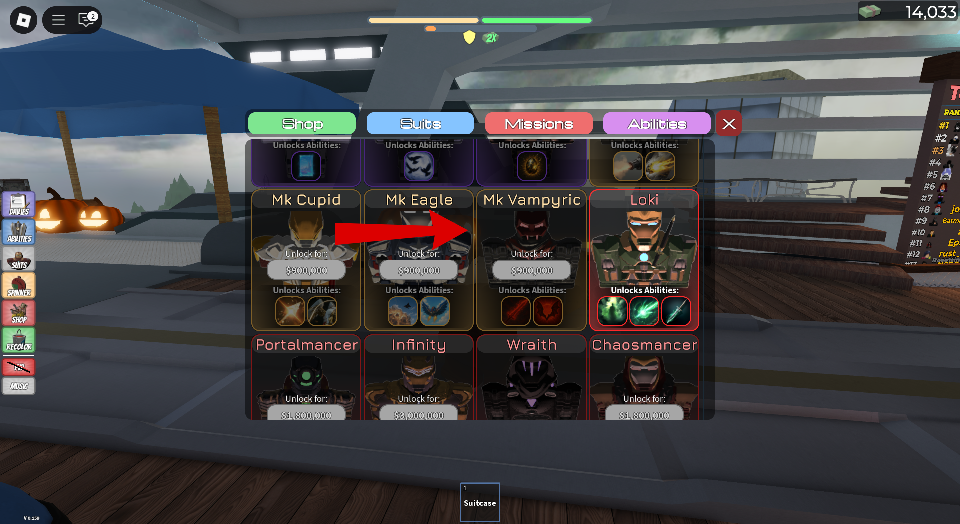 Think of it like dressing up your character as a vampire superhero. The game also got a complete Halloween makeover with decorations like pumpkins, creepy red fog, and spooky stuff all around the hangar where you keep your suits.