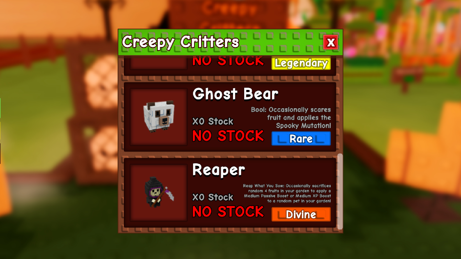 - Boo!: The Ghost Bear’s pet trait triggers every ~20 minutes. Each time, the pet will scare a random plant in your garden, giving it the Spooky Mutation.