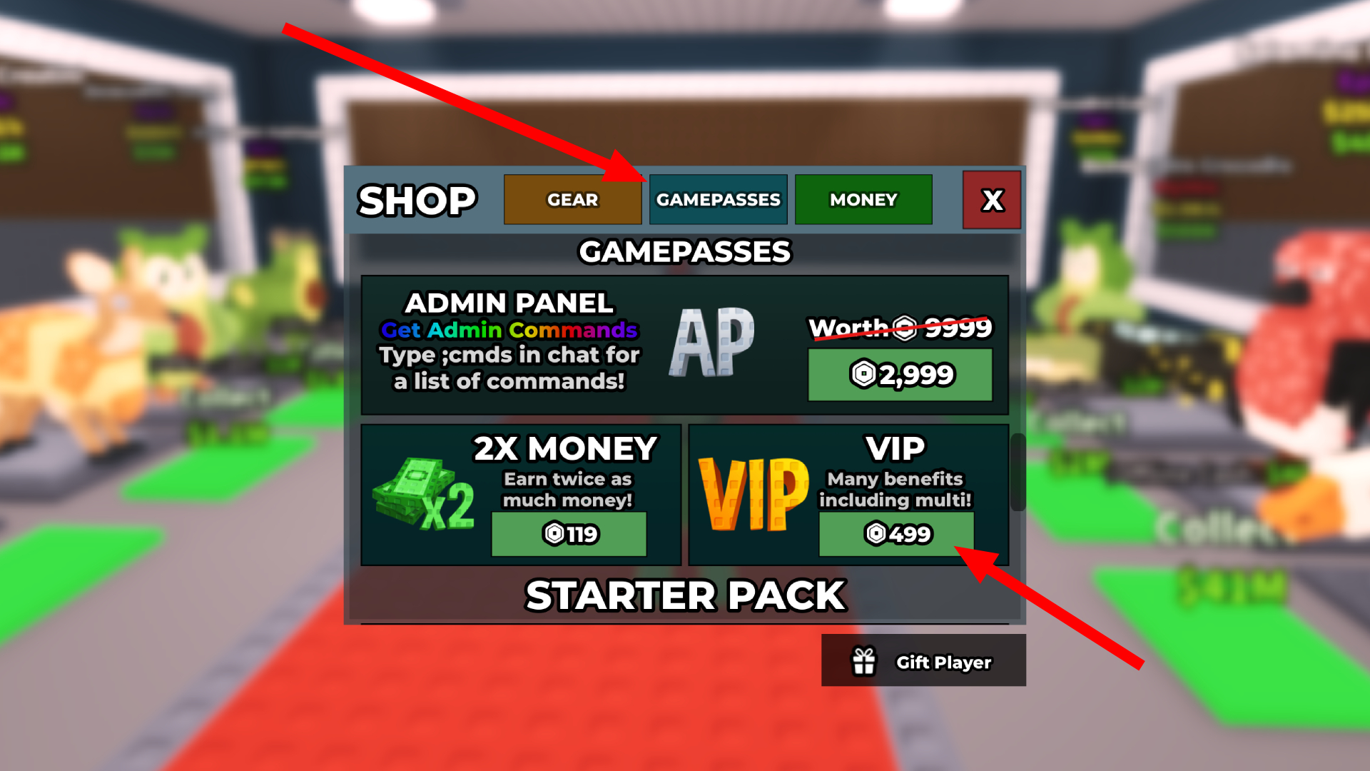 - Click on the Gamepasses tab as shown in the photo above.
