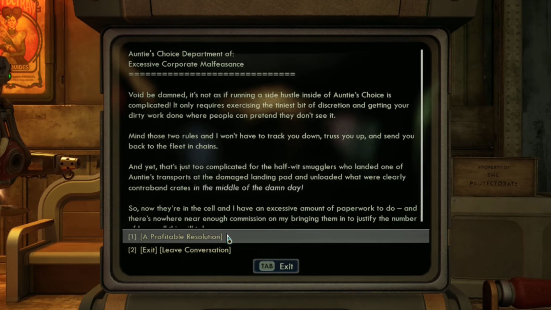 Your first task as a member of the Sub Rosa faction is to help delete any and all evidence that can be used against them, especially against Auntie Fizzo. This evidence is inconveniently placed on Officer Cardosa’s terminal, and your job is to now go and delete it.